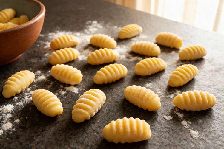 - Druk met een vork lichte ribbels in de gnocchi voor een klassieke uitstraling.