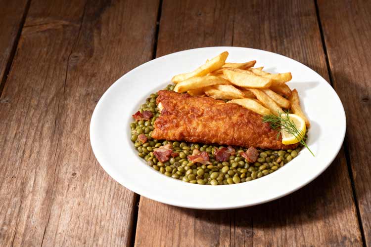 Wentel de filets door een beslag van bloem, water en kruiden en frituur ze drie tot vier minuten op 180 graden Celsius.