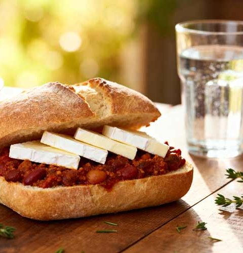 Rasp wat oude kaas door het gehakt voor een hartige twist.