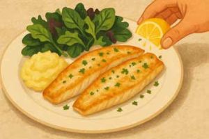 - Besprenkel de vis met een beetje citroensap en, als je wilt, wat verse peterselie. Serveer direct, bijvoorbeeld met aardappelpuree, een frisse salade of gestoomde groenten.