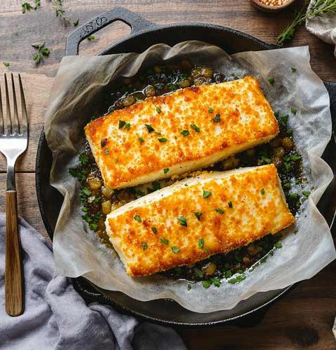 - De vis is klaar als hij lichtbruin is aan beide kanten en makkelijk uit elkaar valt. Haal de filets uit de pan en leg ze op een bord. Serveer direct met een partje citroen en wat fijngehakte peterselie.