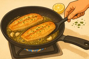 De baktijd bij meerval bakken hangt een beetje af van de dikte van de filets, maar gemiddeld bak je meerval in totaal ongeveer 8 tot 10 minuten. Reken op zo’n 4 à 5 minuten per kant in een goed hete pan. De vis moet mooi goudbruin zijn van buiten en nog net sappig van binnen. Het is belangrijk om niet te lang door te bakken, want dan wordt meerval droog.